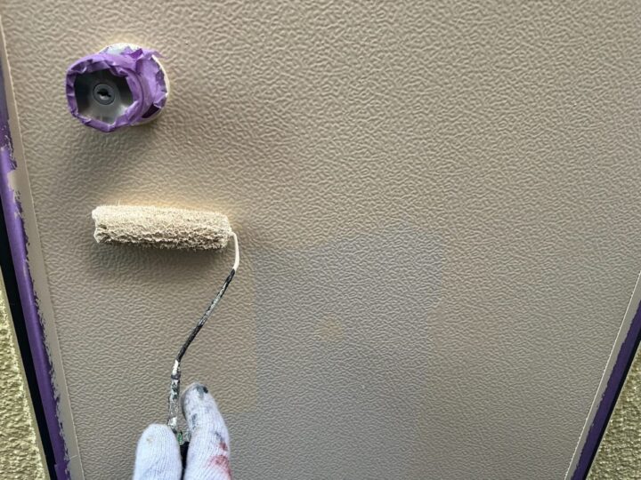 中塗りに使用した塗料で、上塗りを行います。2回塗ることで適切な膜厚を確保します。