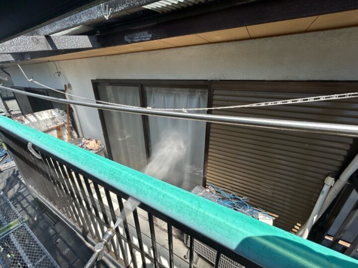 塗装面についた古い塗膜やサビを除去。キレイに塗料でコーティングするために重要です。外壁 クラック補修