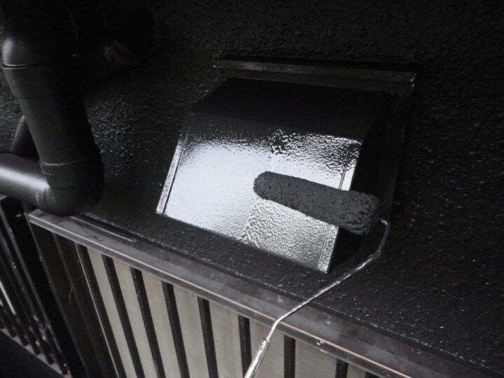 換気フードも下塗り、中塗り、上塗りをします。雨押え 上塗り