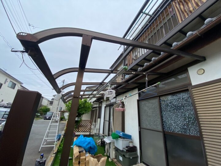 カーポートの屋根を取り外し、洗浄します。カーポート 脱着