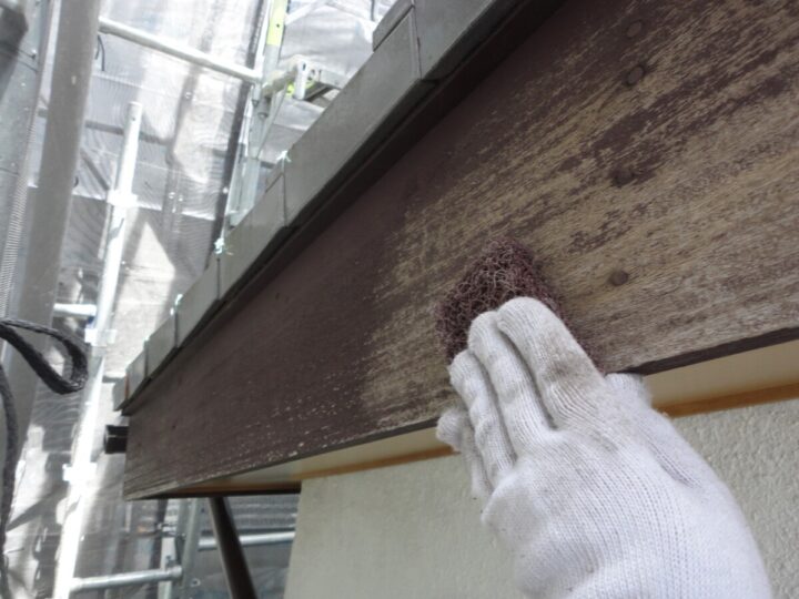 塗装面についた古い塗膜やサビを除去。キレイに塗料でコーティングするために重要です。破風 ケレン