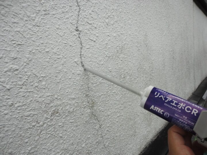 劣化した部分を専用の補修材で補修します。外壁 クラック補修