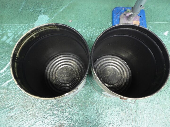 中塗りに使用した塗料で、上塗りを行います。2回塗ることで適切な膜厚を確保します。雨樋 上塗り