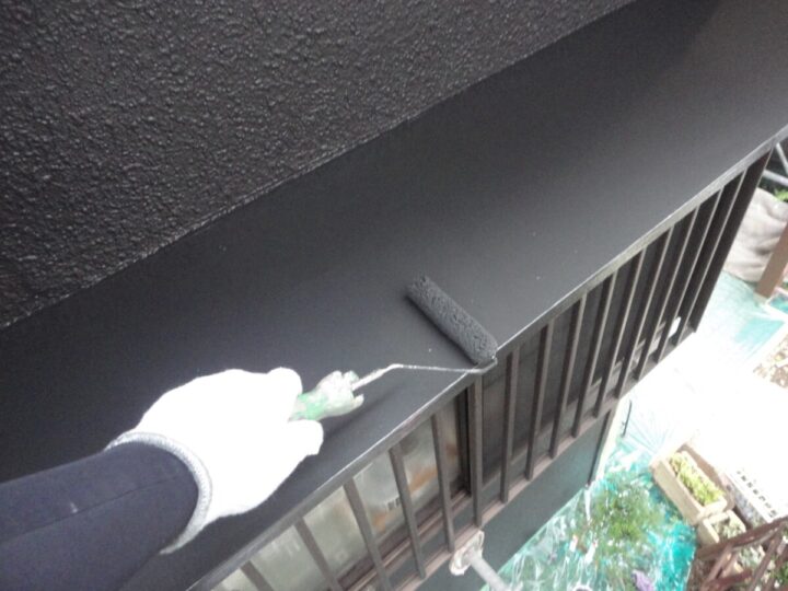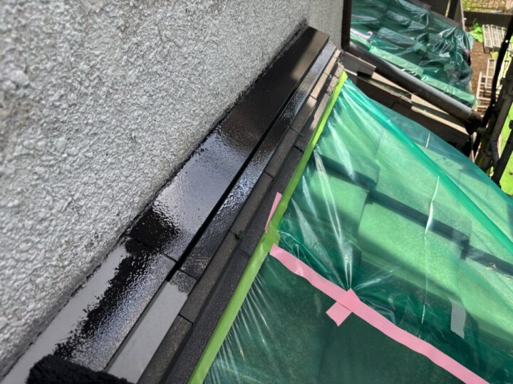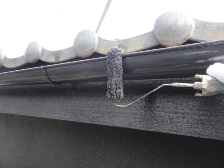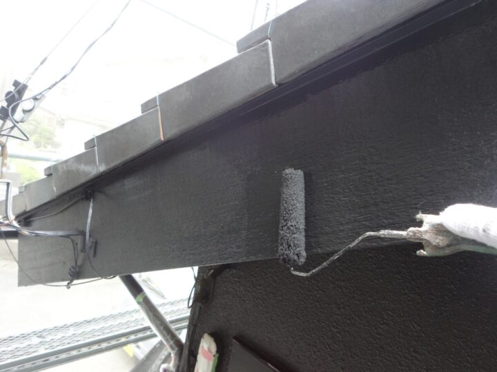 雨押えも下塗り、中塗り、上塗りをします。垂木 上塗り