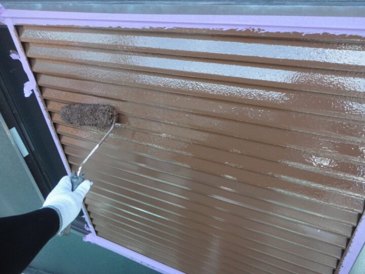 庇も下塗り、中塗り、上塗りをします。雨戸 上塗り