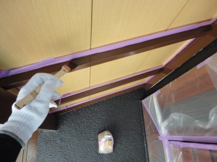 垂木も下塗り、中塗り、上塗りをします。カーポート 脱着