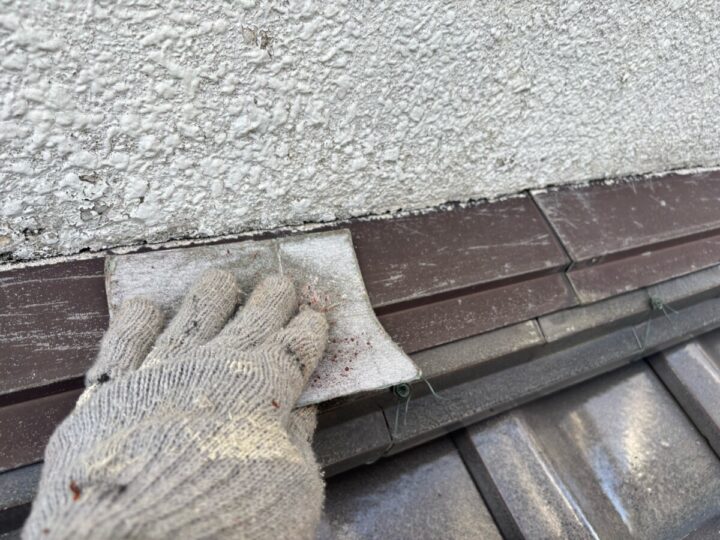 塗装面についた古い塗膜やサビを除去。キレイに塗料でコーティングするために重要です。雨押え ケレン