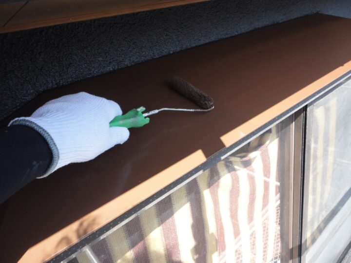 出窓も下塗り、中塗り、上塗りをします。庇 上塗り