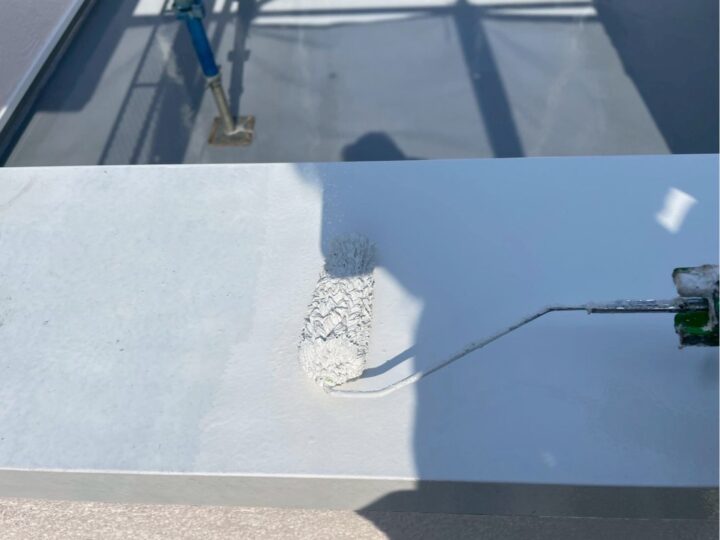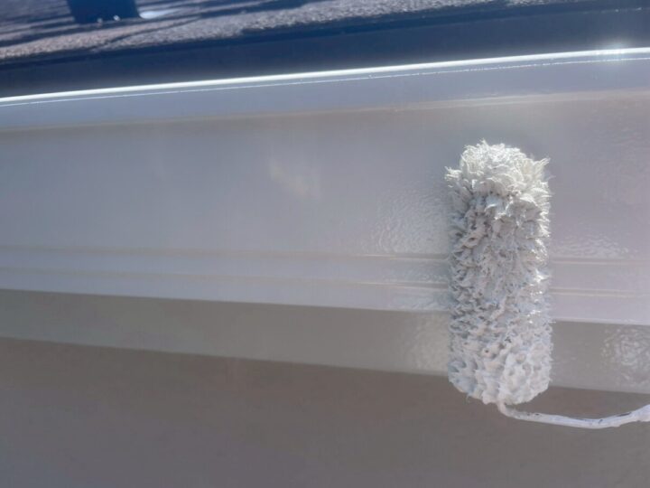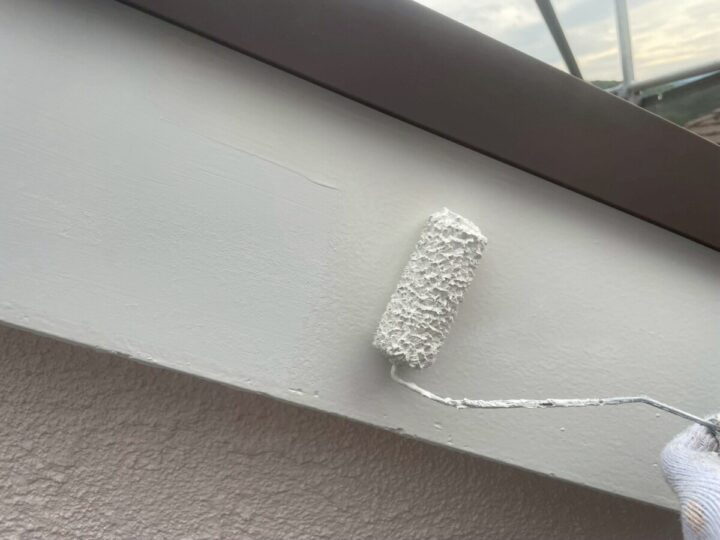 笠木も下塗り、中塗り、上塗りをします。幕板 上塗り