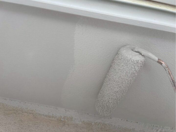 外壁に下塗りをしています。上からの塗料をしっかり密着させるために、下地をしっかり調整していきます。外壁 中塗り