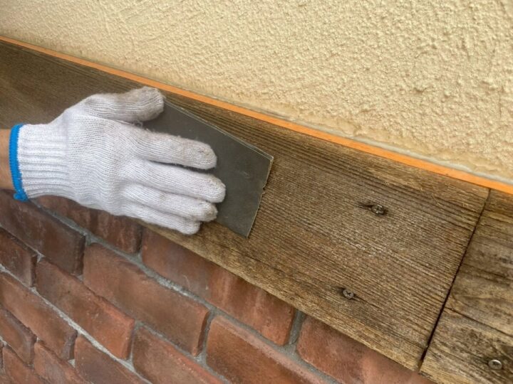 劣化した部分を専用の補修材で補修します。破風 シーリング打設