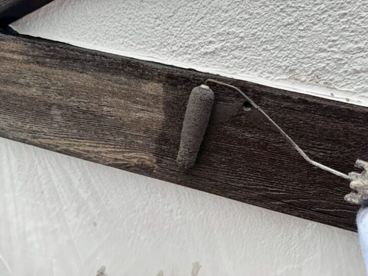 軒天も下塗り、中塗り、上塗りをします。笠木 上塗り