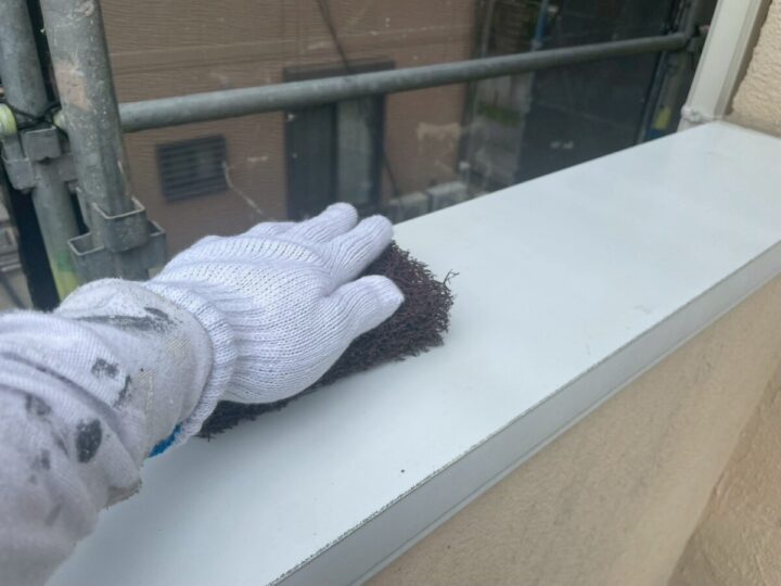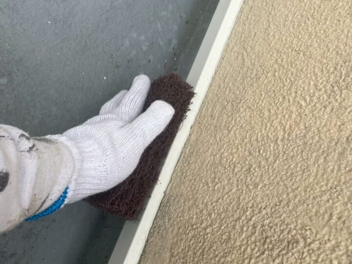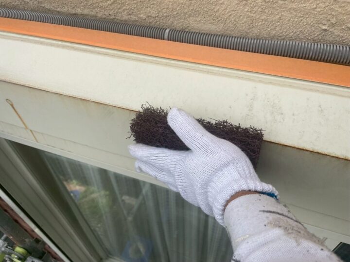 塗装面についた古い塗膜やサビを除去。キレイに塗料でコーティングするために重要です。外壁 クラック補修