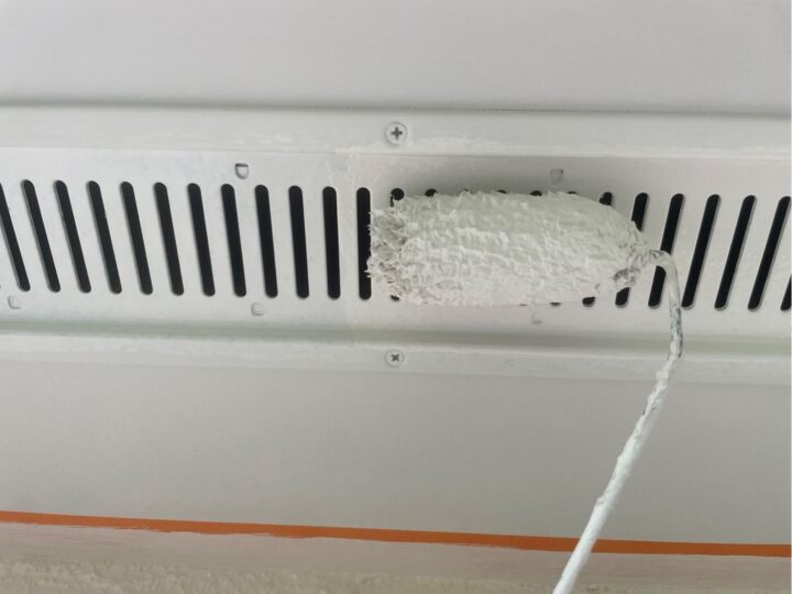 通気口も下塗り、中塗り、上塗りをします。軒天 上塗り