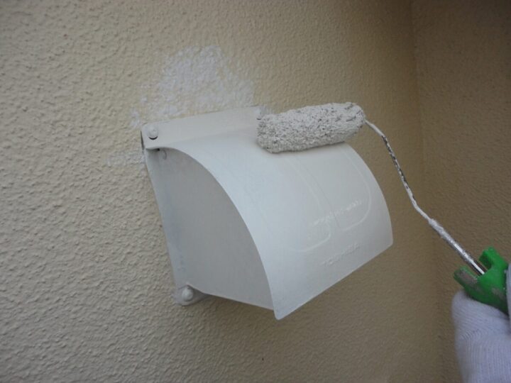 通気口も下塗り、中塗り、上塗りをします。出窓 上塗り