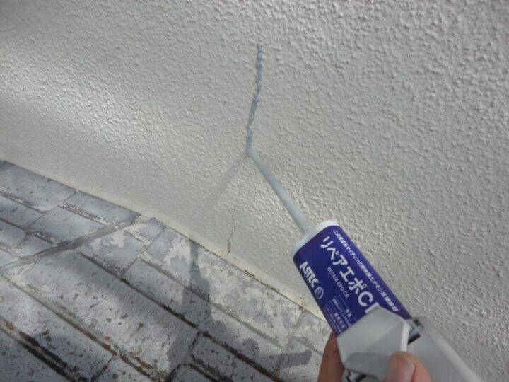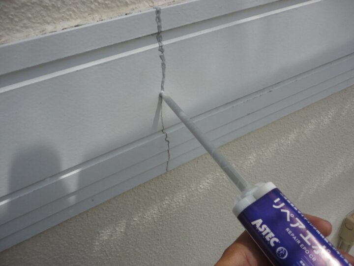亀裂が入っている部分を専用の補修材で補修します。幕板 クラック補修
