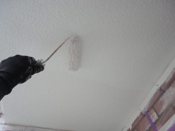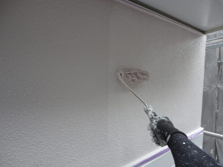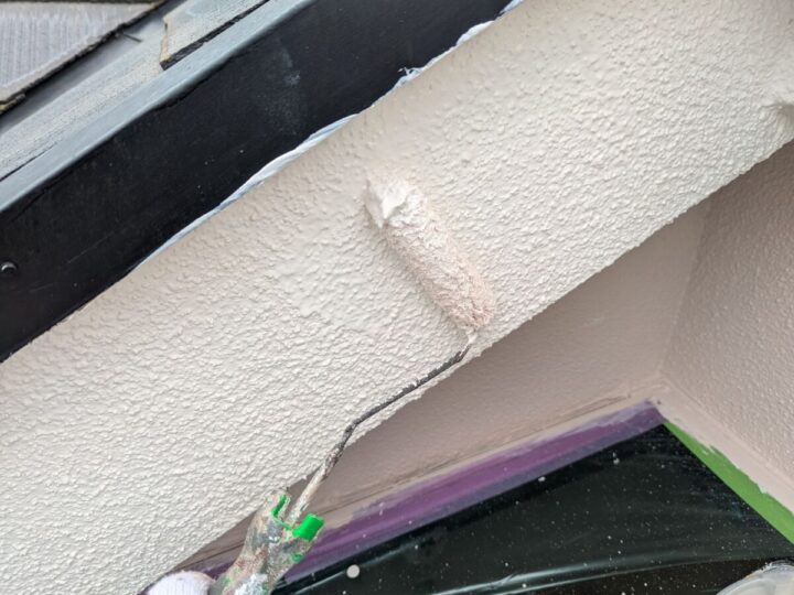 破風も下塗り、中塗り、上塗りをします。軒天 上塗り