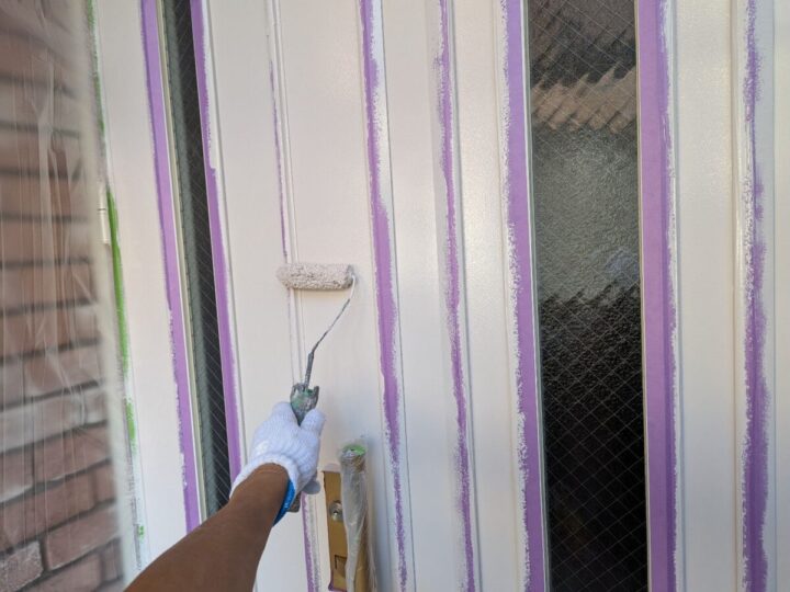 玄関扉も下塗り、中塗り、上塗りをします。水切り 上塗り