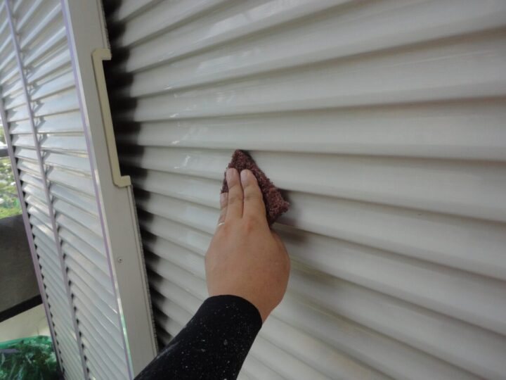 塗装面についた古い塗膜やサビを除去。キレイに塗料でコーティングするために重要です。雨戸 ケレン