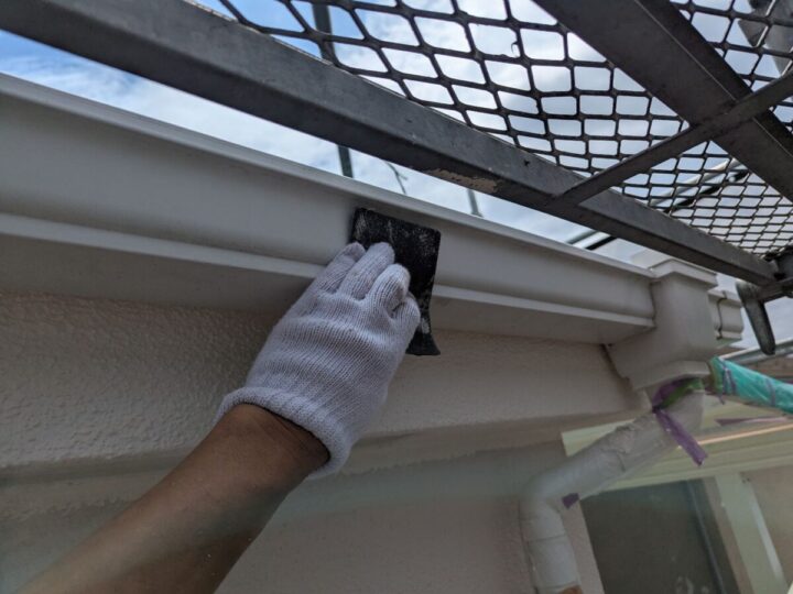雨樋も下塗り、上塗りをします。破風 上塗り