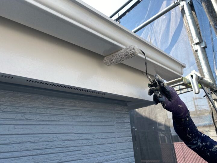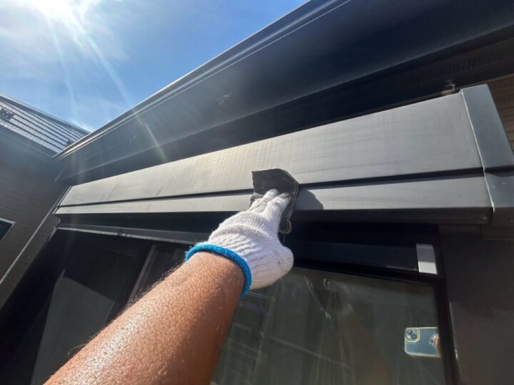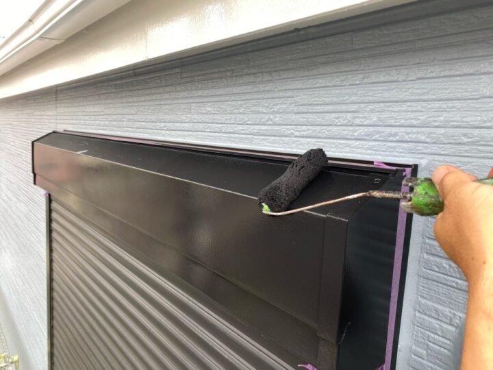 シャッターボックスも下塗り、中塗り、上塗りをします。水切り 上塗り