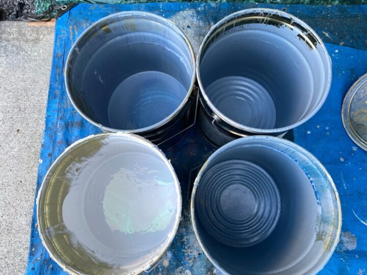 塗装面についた古い塗膜やサビを除去。キレイに塗料でコーティングするために重要です。バルコニー 脱脂