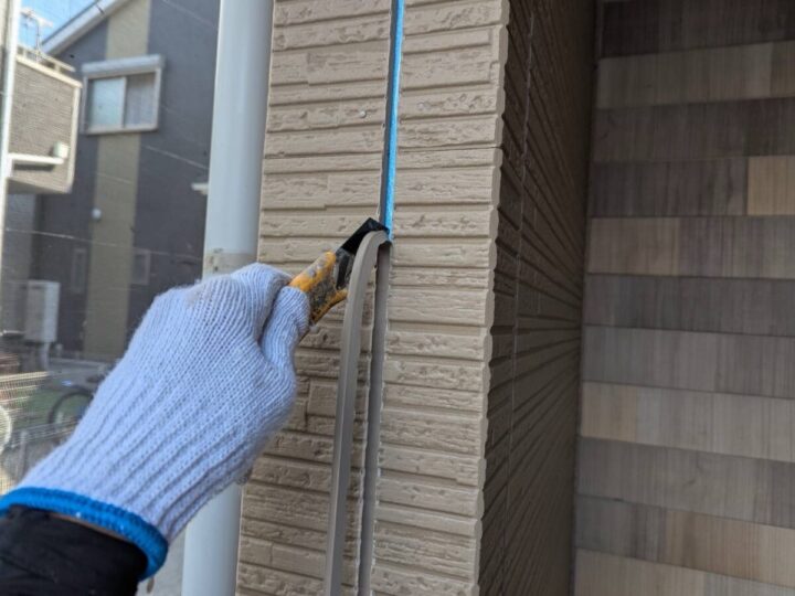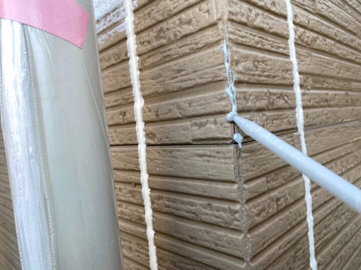 外壁のコーナー部分を補修します。外壁 シーリング撤去