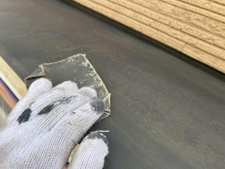 塗装面についた古い塗膜やサビ・油分を除去。キレイに塗料でコーティングするために重要です。庇 ケレン