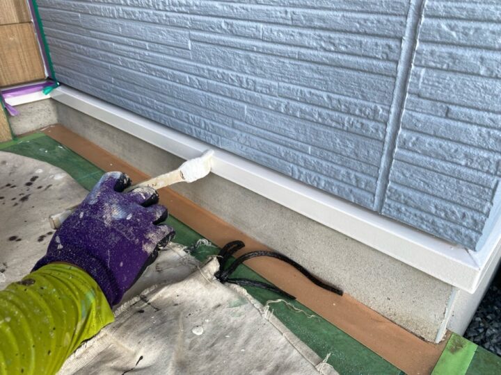 水切りも下塗り、中塗り、上塗りをします。バルコニー 上塗り