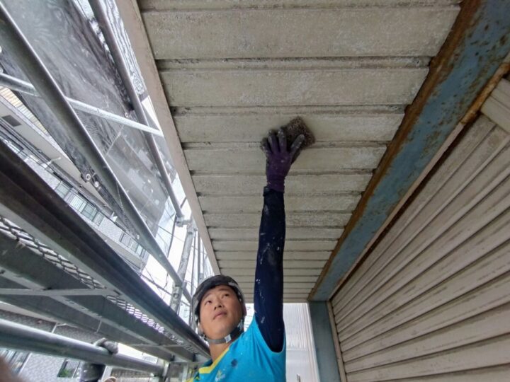 シャッターボックスも下塗り、中塗り、上塗りをします。