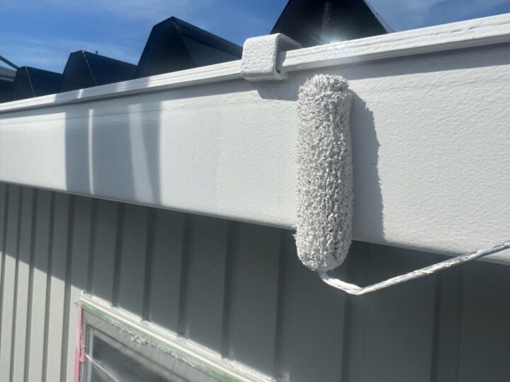 軒樋は下塗り、上塗りをします。