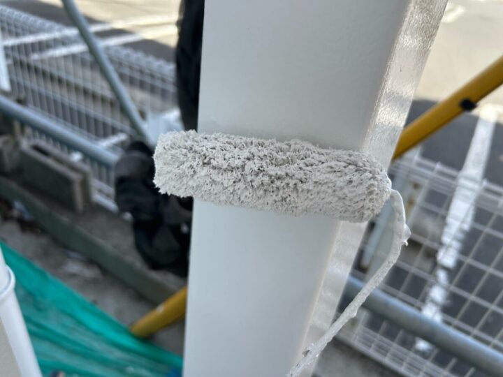 鉄柱も下塗り、中塗り、上塗りをします。