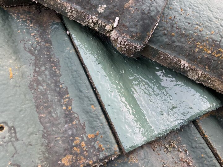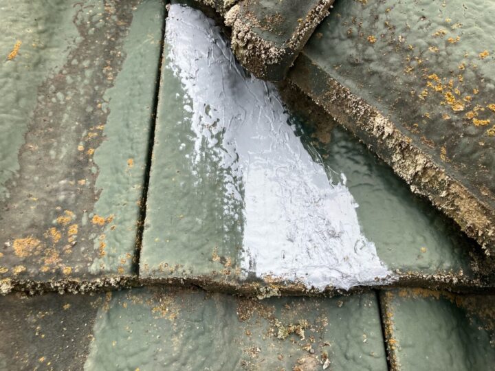 瓦の一部を専用の補修材を使用して補修します。