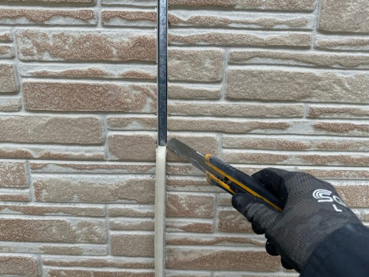 劣化していた外壁の目地コーキング(シーリング)を撤去します。