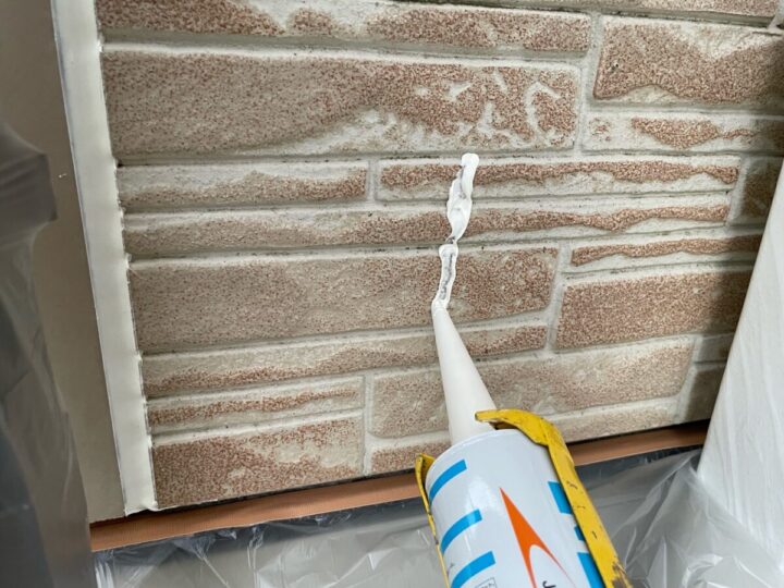 サッシや玄関ドア周りにも新しいコーキングを増し打ちします。