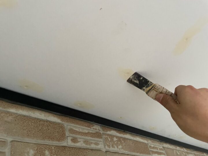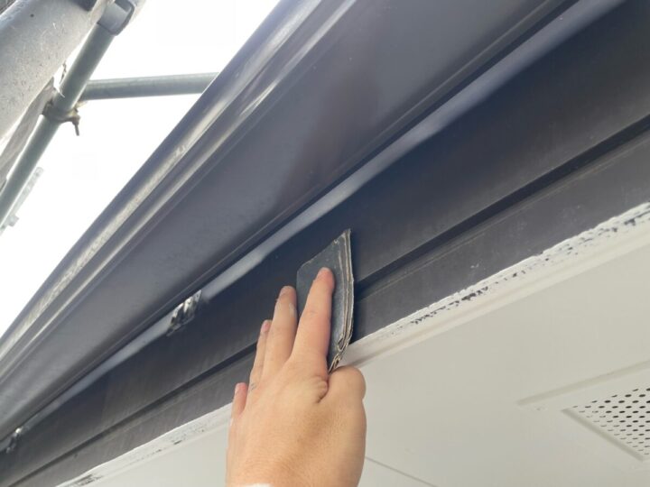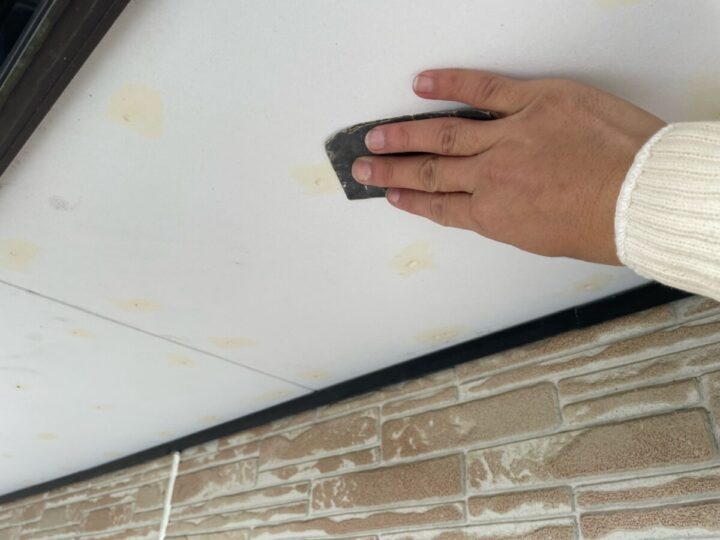張り替えた軒天の下地処理をします。