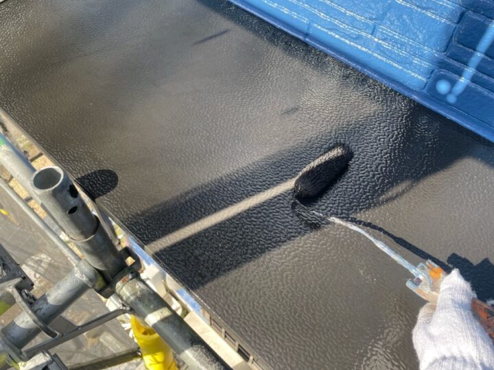 中塗りに使用した塗料で、上塗りを行います。2回塗ることで適切な膜厚を確保します。